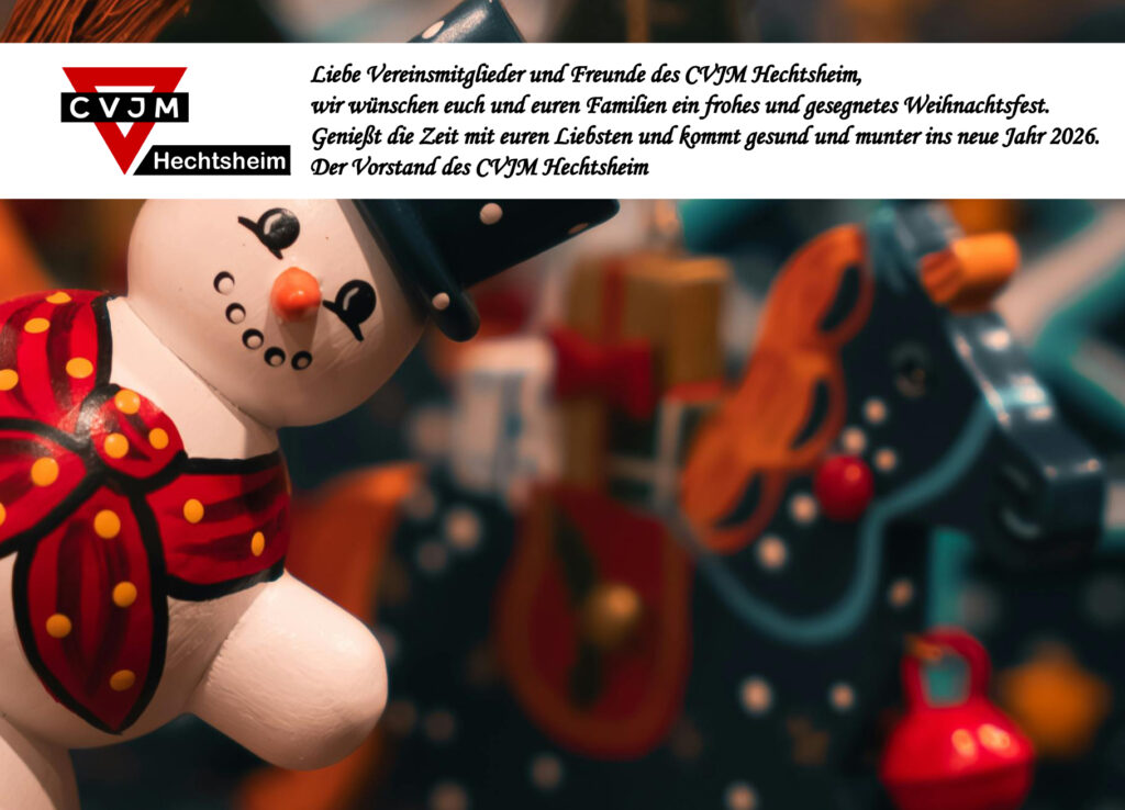 Liebe Vereinsmitglieder und Freunde des CVJM Hechtsheim, wir wünschen euch und euren Familien ein frohes und gesegnetes Weihnachtsfest. Genießt die Zeit mit euren Liebsten und kommt gesund und munter ins neue Jahr 2026!